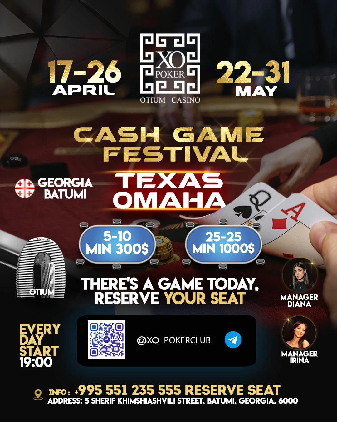 Cash Festival | THNL / PLO | Batumi, XO Poker / Otium Casino | 17 - 26 APRIL & 22 - 31 MAY 2026
