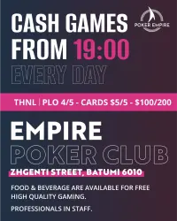 Empire Poker Club | Batumi, Every night NLTH/PLO(4/5 cards) | $5/5 - $100/200